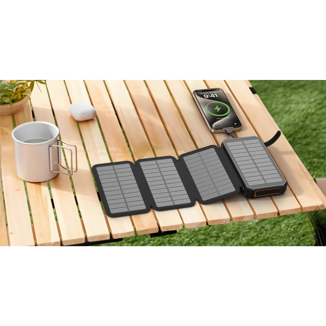 Stay powered for days with the ultra-high 48,000mAh solar power bank. Built with a durable lithium-polymer battery, it provides safer, longer-lasting performance—offering up to 80% more charging cycles than standard batteries.